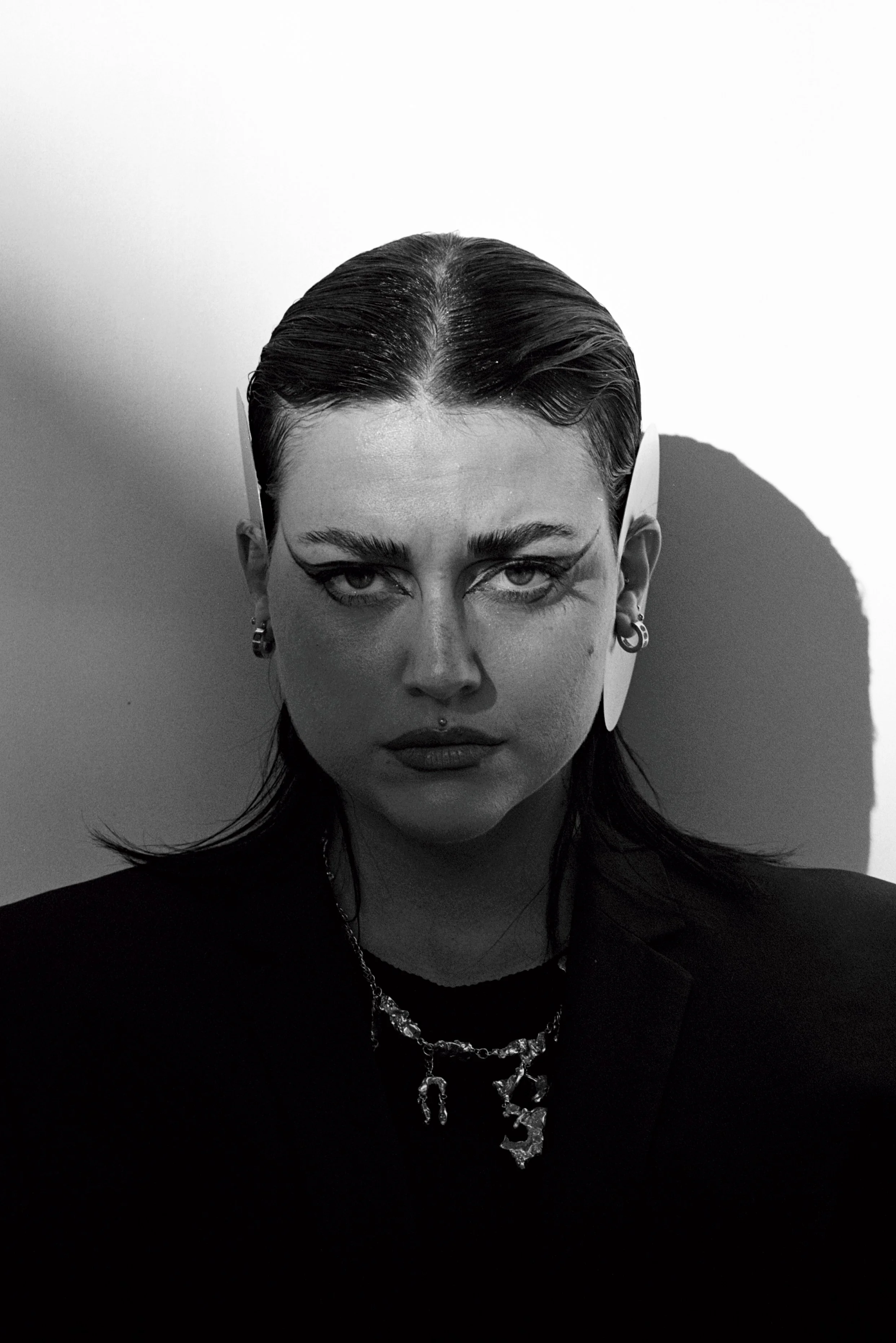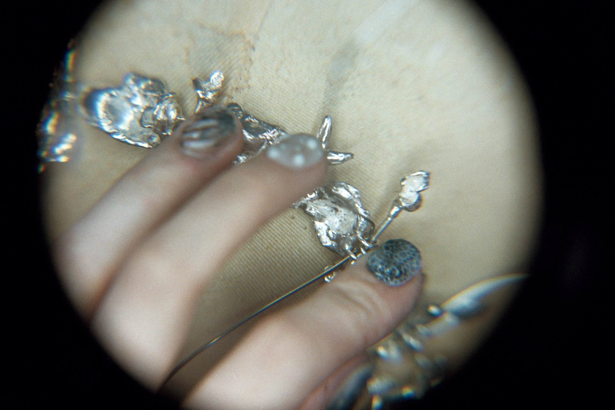 I am most interested in creating designs and jewelry for the face where I can create interesting compositions and unusual formations. Also, many of my designs are somehow connected or supported by the nose. Being the furthest part of the face it fascinates me how different it can be from person to person. I enjoy integrating fashion design with jewelry design and accessories. The experimentation will never end and I am curious to see how the designs will progress over time.